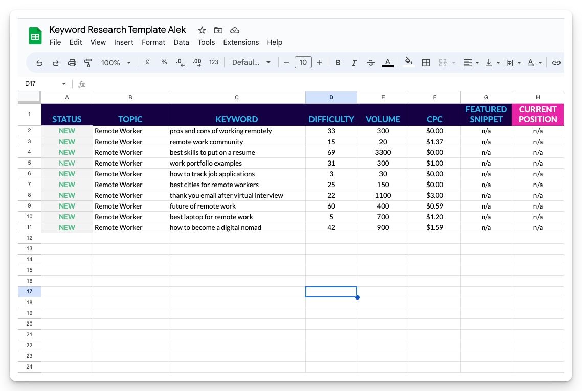 - I research these terms and related terms, search intent, and topic grouping
