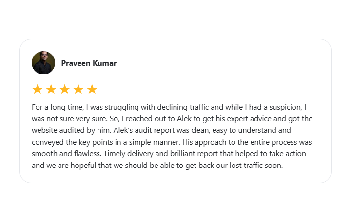 I have 9 years of experience in the SEO industry and have worked with SaaS businesses and niche website builders. I have completed over 300 SEO site audits, including E-commerce, SaaS, and content sites.